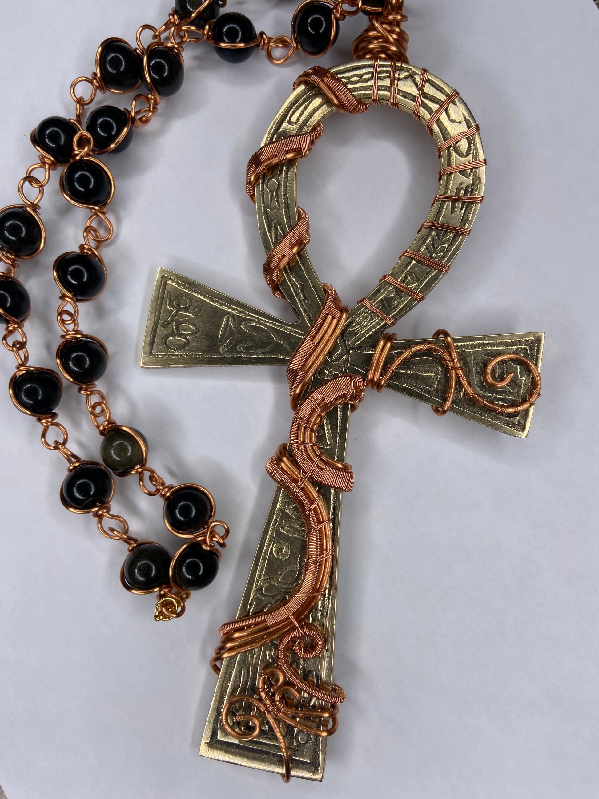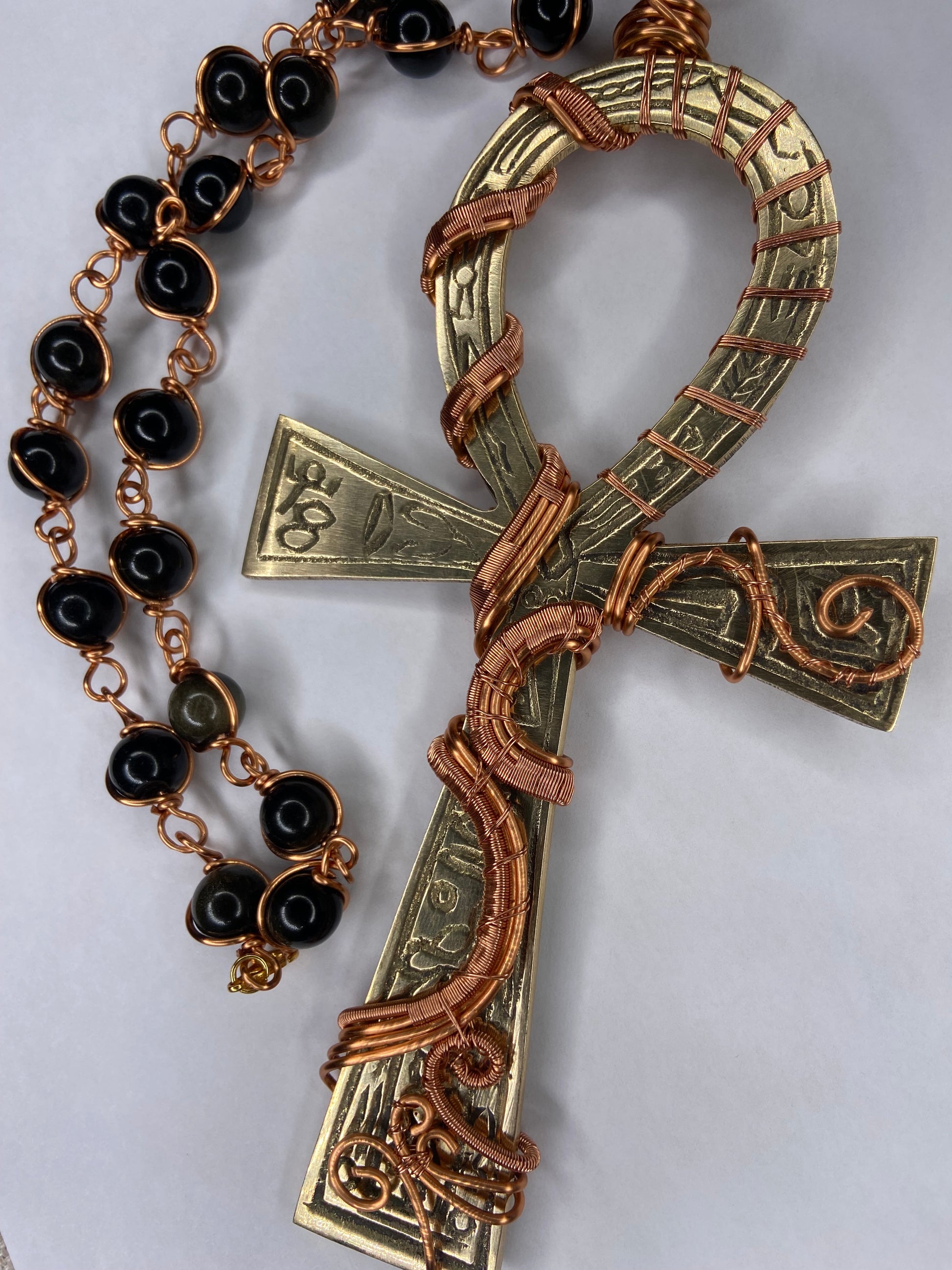 7in Ankh/Golden Obsidian Healing Masterpiece Pendant