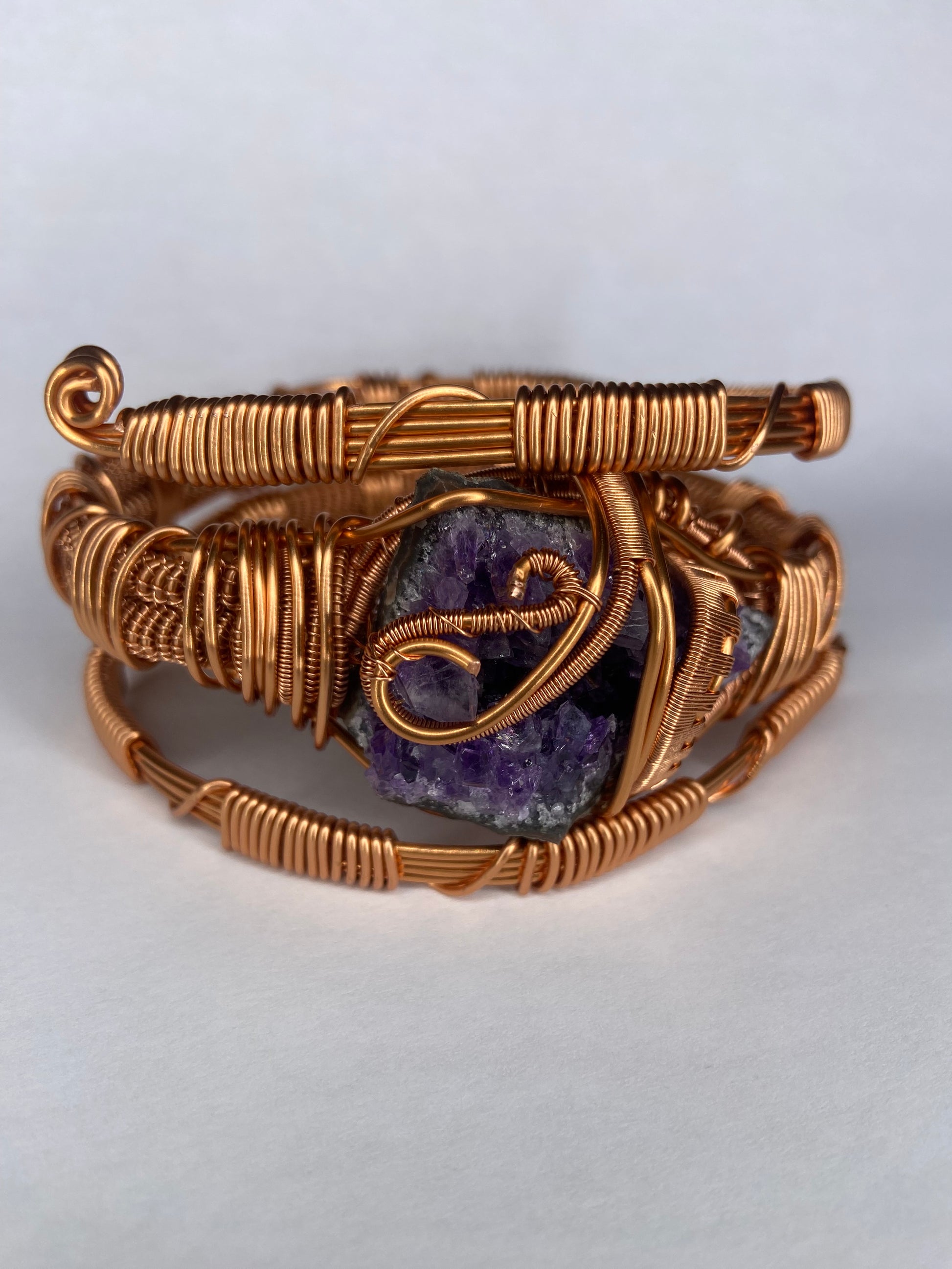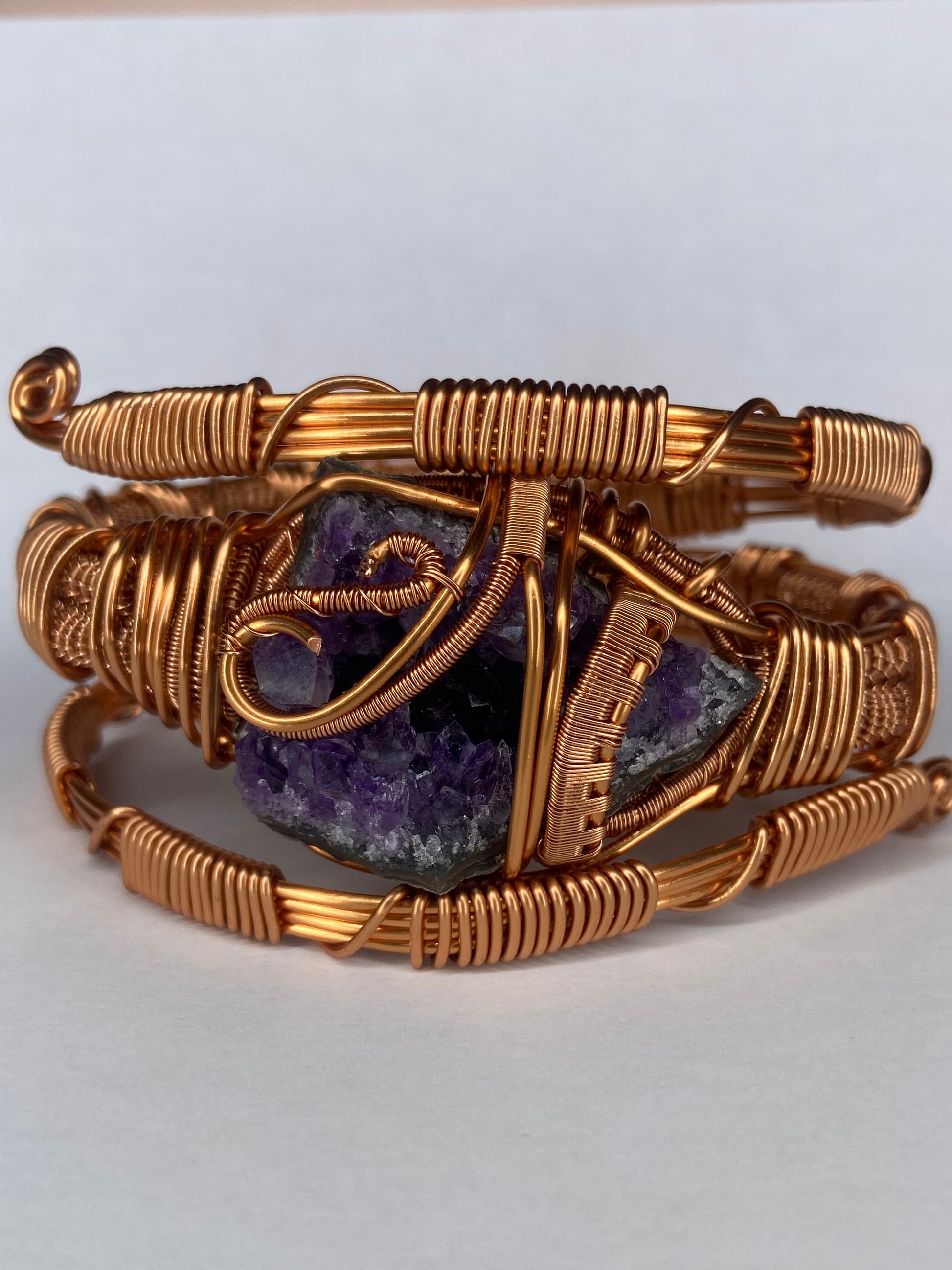 Bathed in the royal glow of deep violet, Amethyst Bracelet is a sanctuary you can wear—a calming force that clears the mind, lifts the spirit, and awakens your intuition. Hand-wrapped in radiant copper, the stone’s natural energy flows freely, releasing tension, quieting overthinking, and aligning you with your highest self. Imagine fastening it against your skin: the gentle weight grounding you, the cool smoothness soothing your heart, and a soft, empowering calm settling over your entire being. Each shimmer of purple is a reminder—you are safe, guided, and already more powerful than you realize.