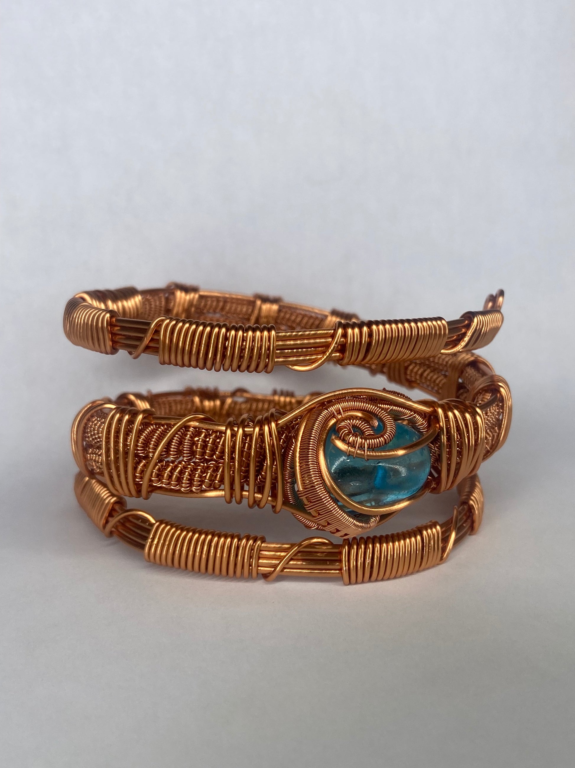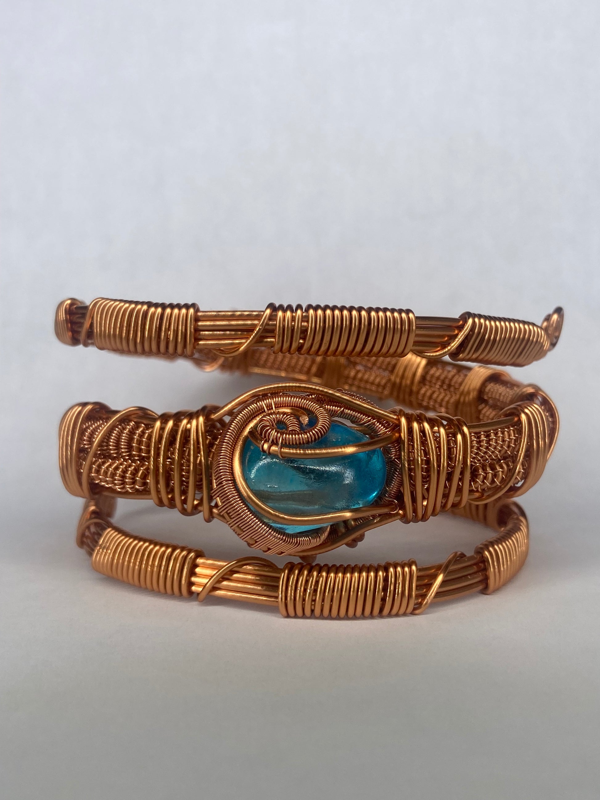 Premium Blue Aqua Aura Quartz Masterpiece Bracelet – Copper Wrapped