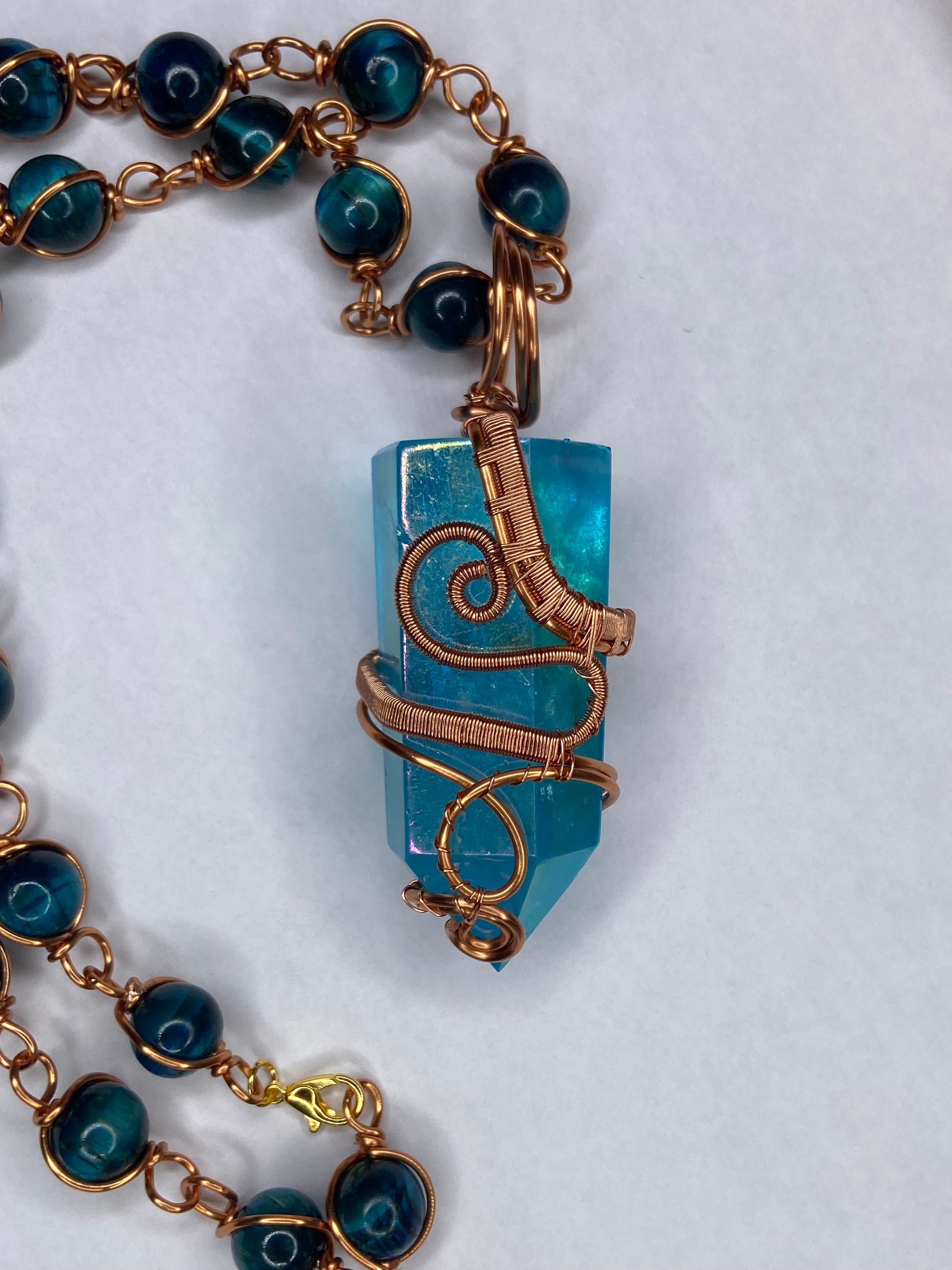 Pure magic and peace in wearable form — this Premium Aqua Aura Quartz Pendant is a luminous masterpiece, delicately wrapped in polished copper to awaken your higher self and elevate your frequency.