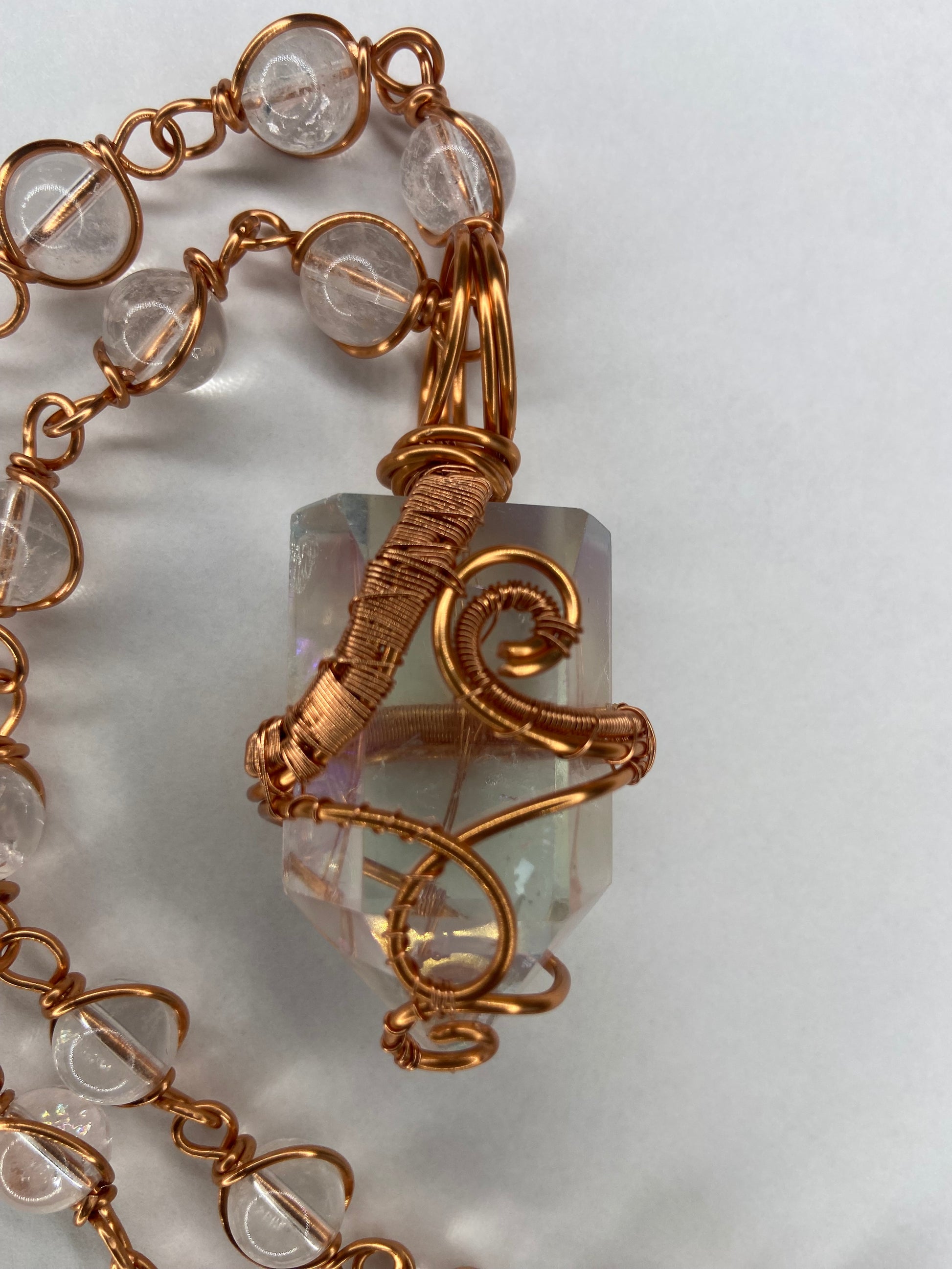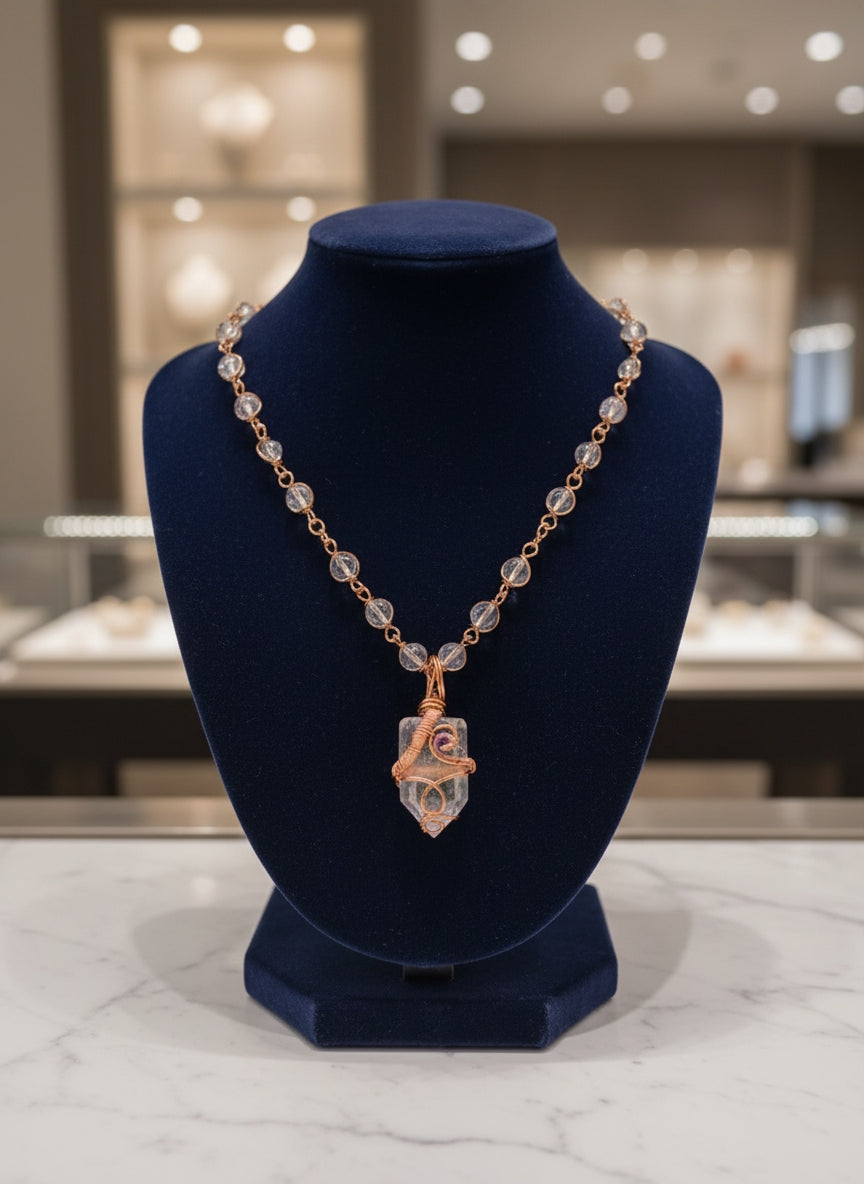 Elevate your energy and embody divine clarity with this one-of-a-kind luxury pendant, hand-wrapped in raw copper and infused with powerful Reiki healing energy.