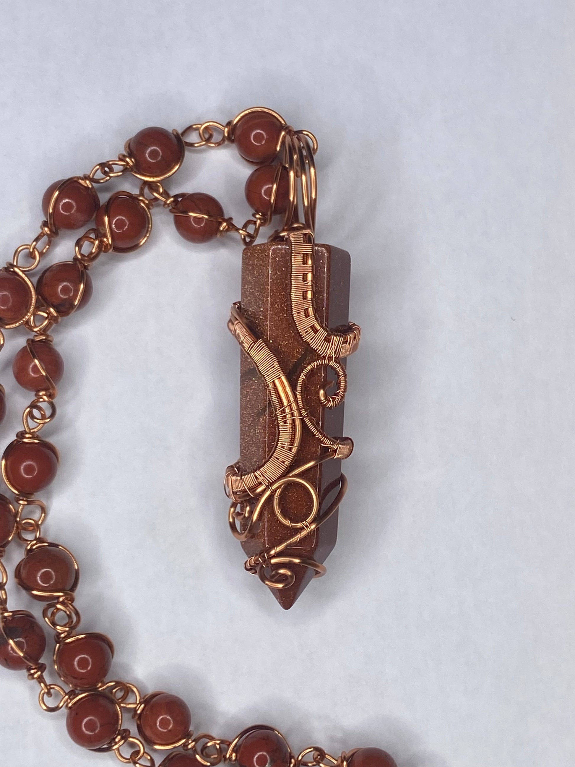 Premium Red Goldstone + Jasper Masterpiece Pendant – Copper Wrapped