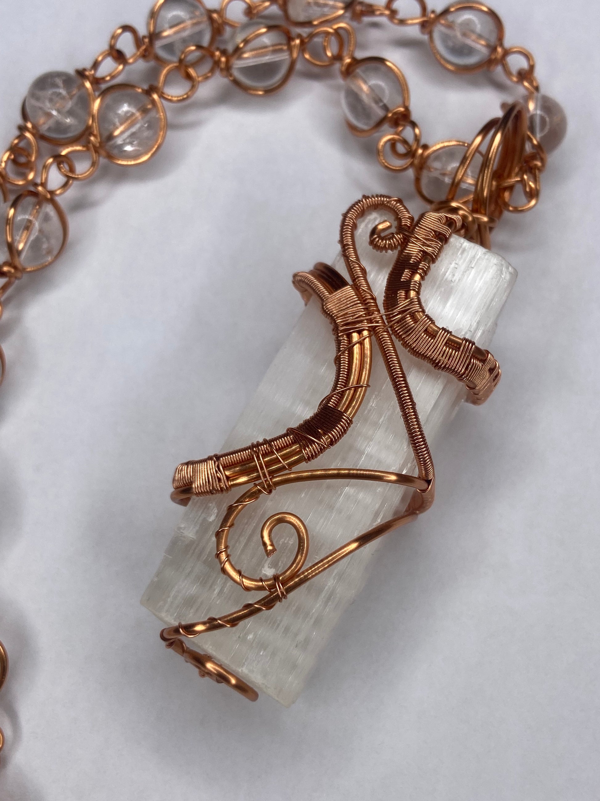 Embrace the celestial vibes and elevate your look with our Selenite Pendant with Clear Quartz Beaded Necklace today! 🌙✨