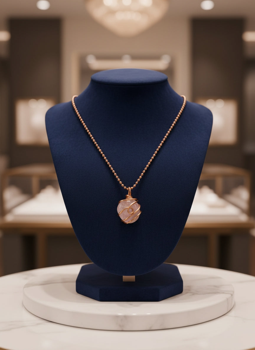 Wear this rose quartz copper-wrapped necklace as a soft, loving reset for your spirit. As it sits close to your heart, it invites in compassion, self-worth, and gentle emotional release, helping you loosen old patterns and open to healthier connections.