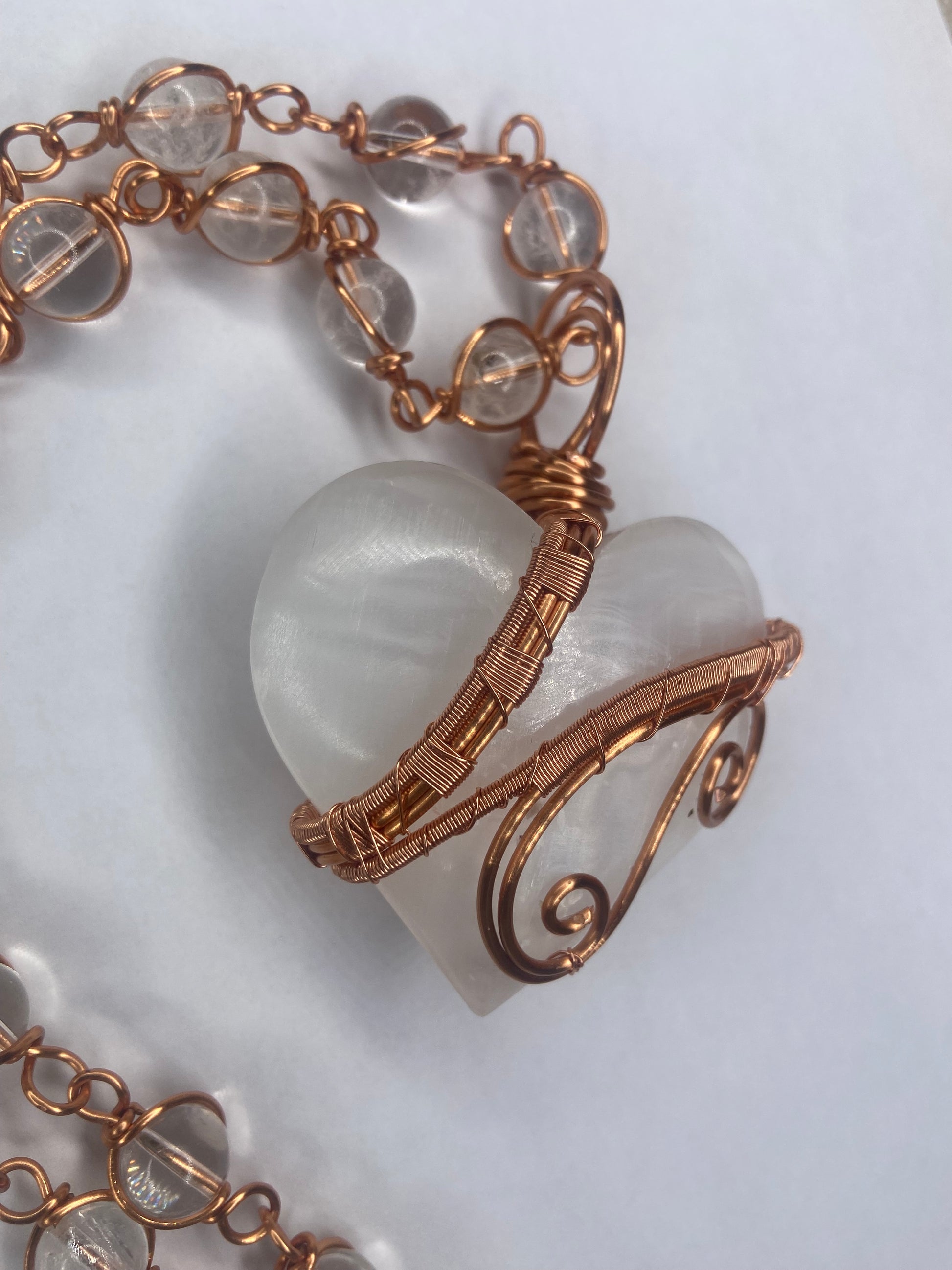 Embrace the celestial vibes and elevate your look with our Selenite Pendant with Clear Quartz Beaded Necklace today! 🌙✨